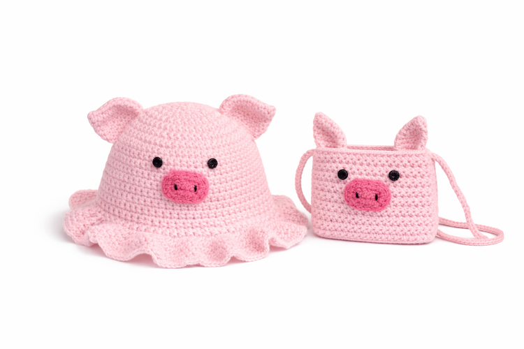 کلاه و کیف دست بافت مدل خوک الی را
